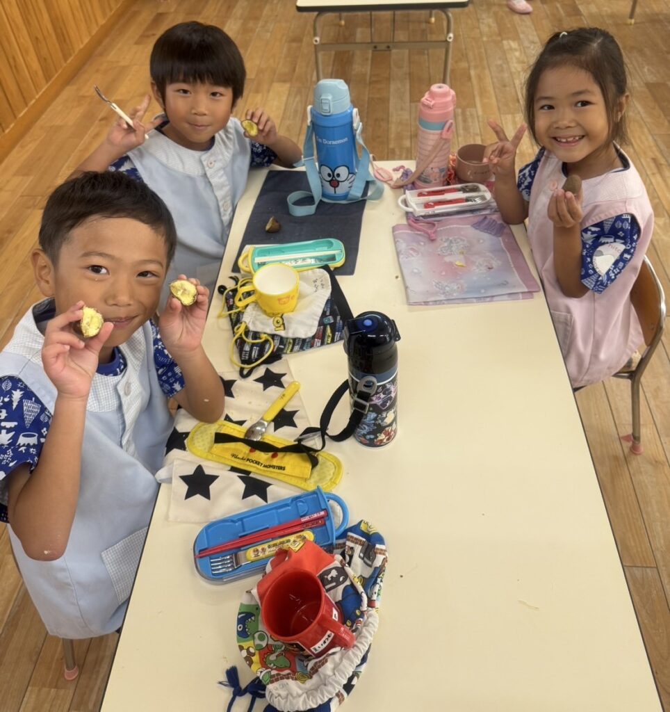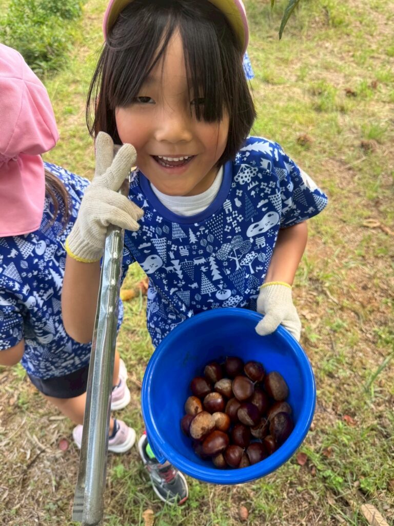 拾った栗は幼稚園で蒸してみんなで食べましたよ。