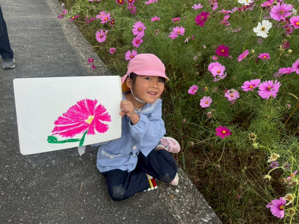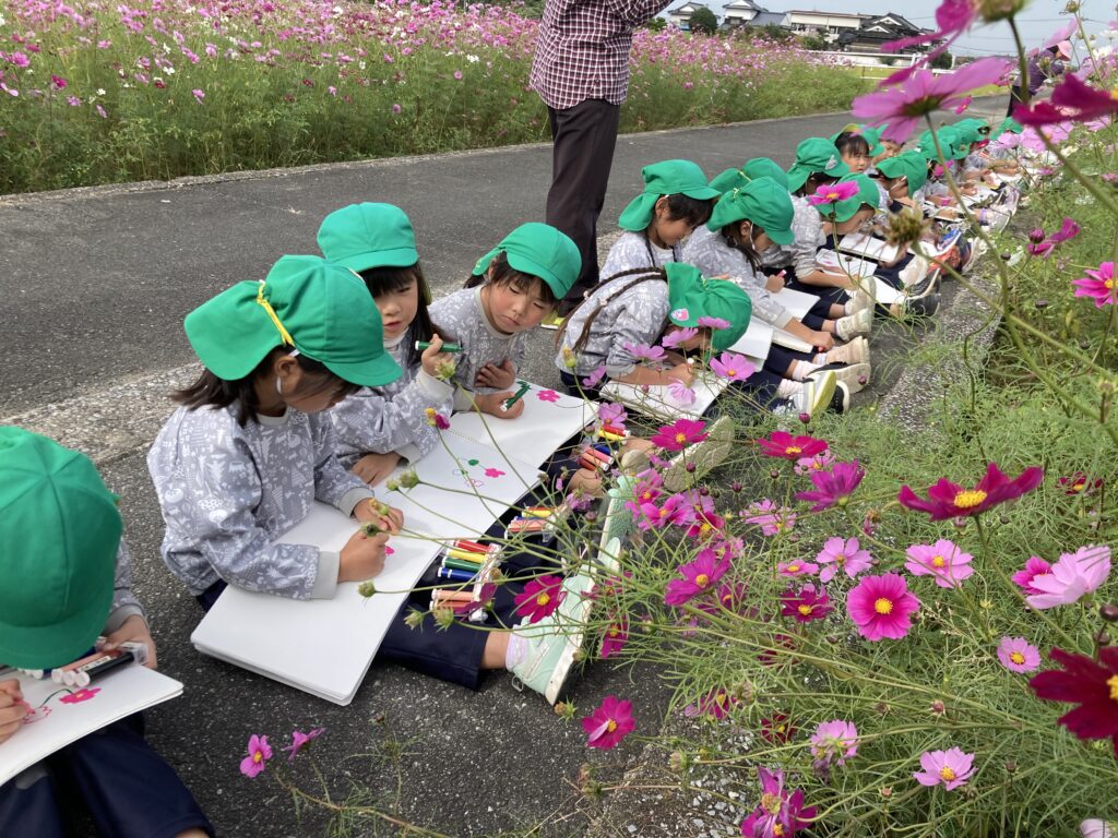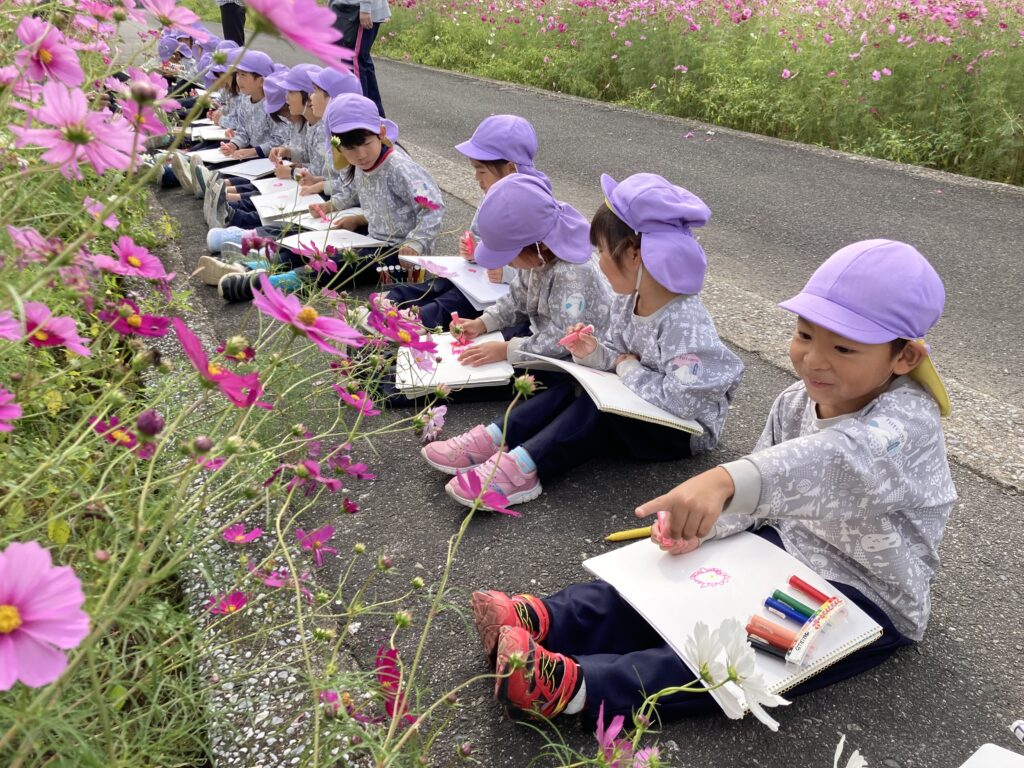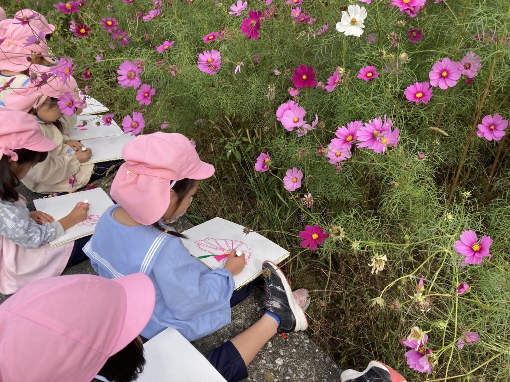 年長さんがおおとう花公園に行き、コスモスをスケッチしました。