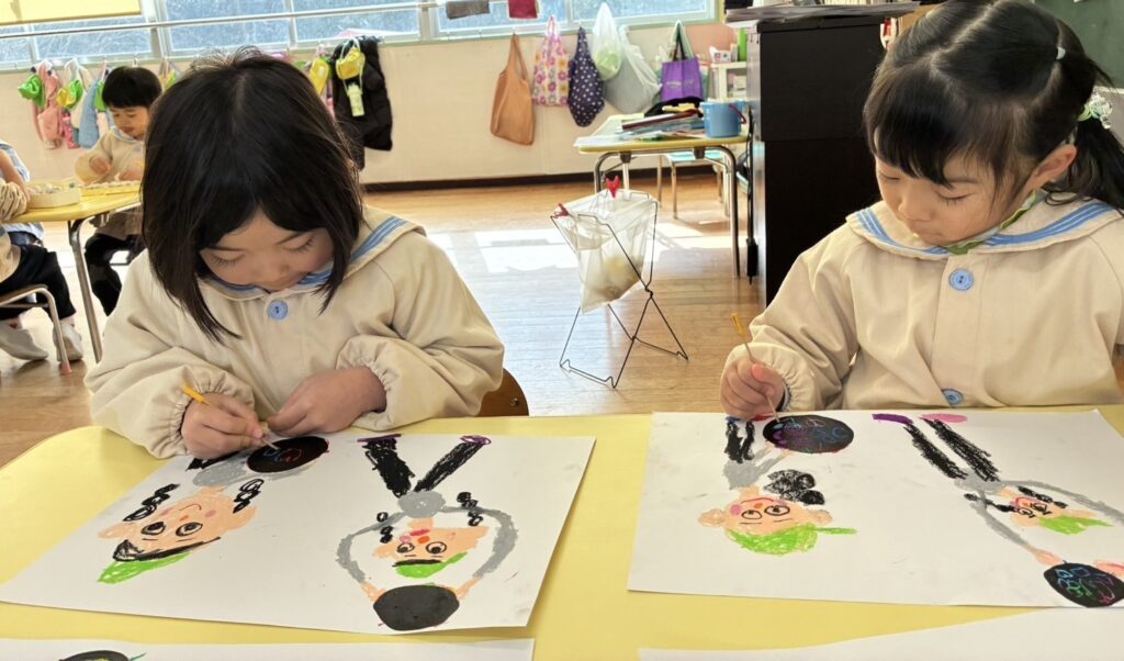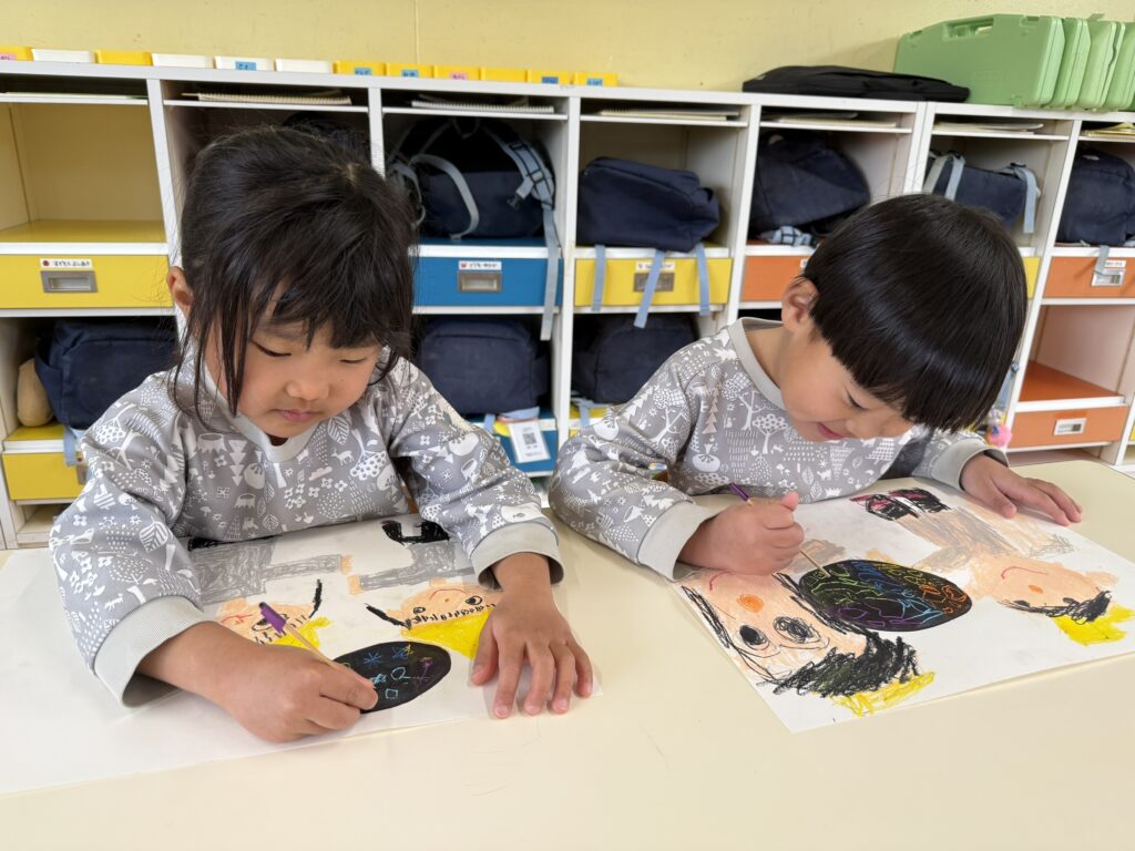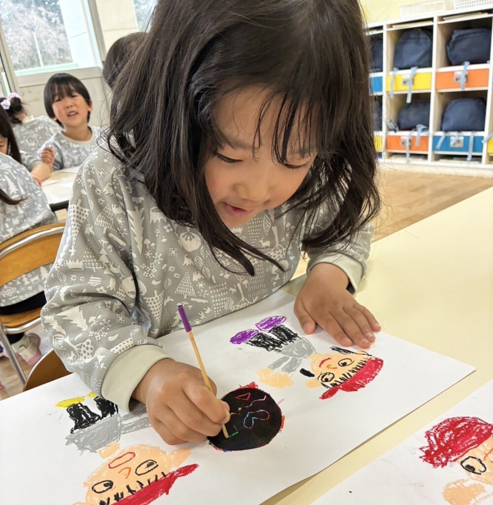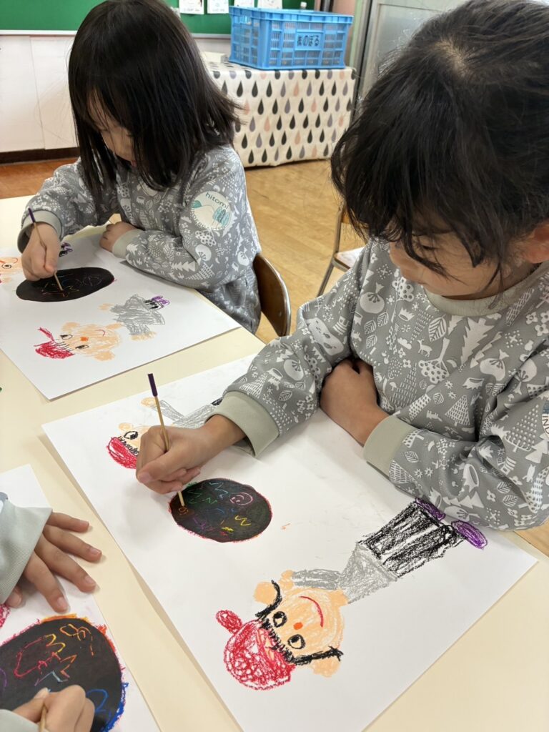 年中組の園児さん達が、ひっかき絵に挑戦!