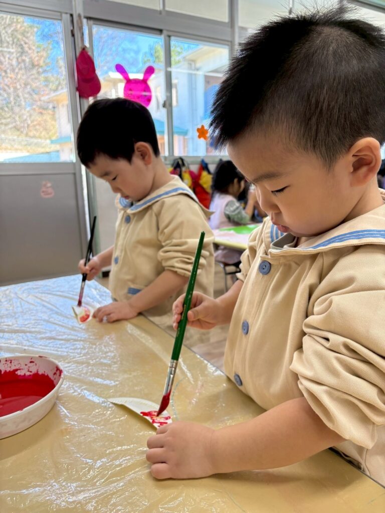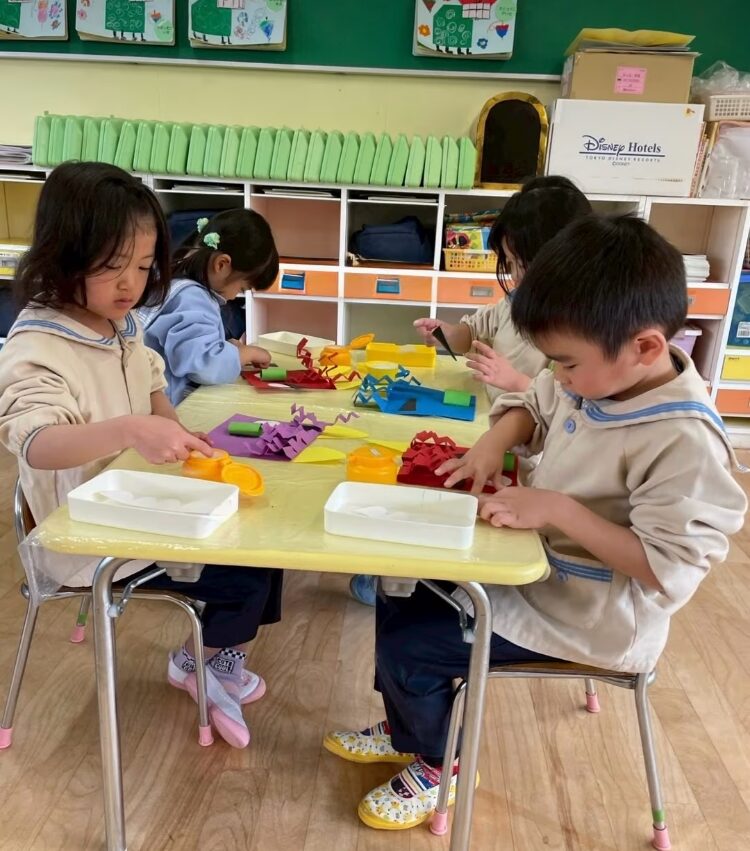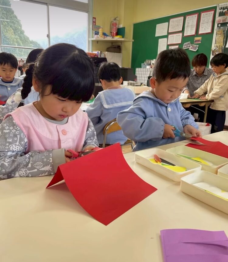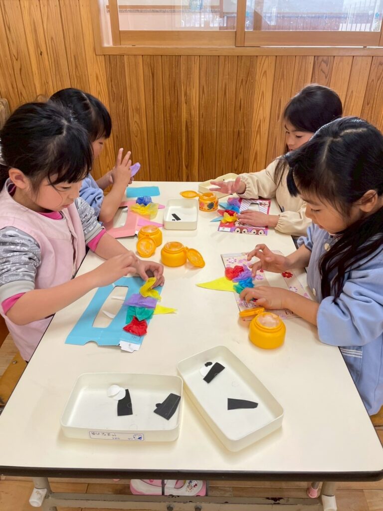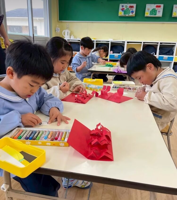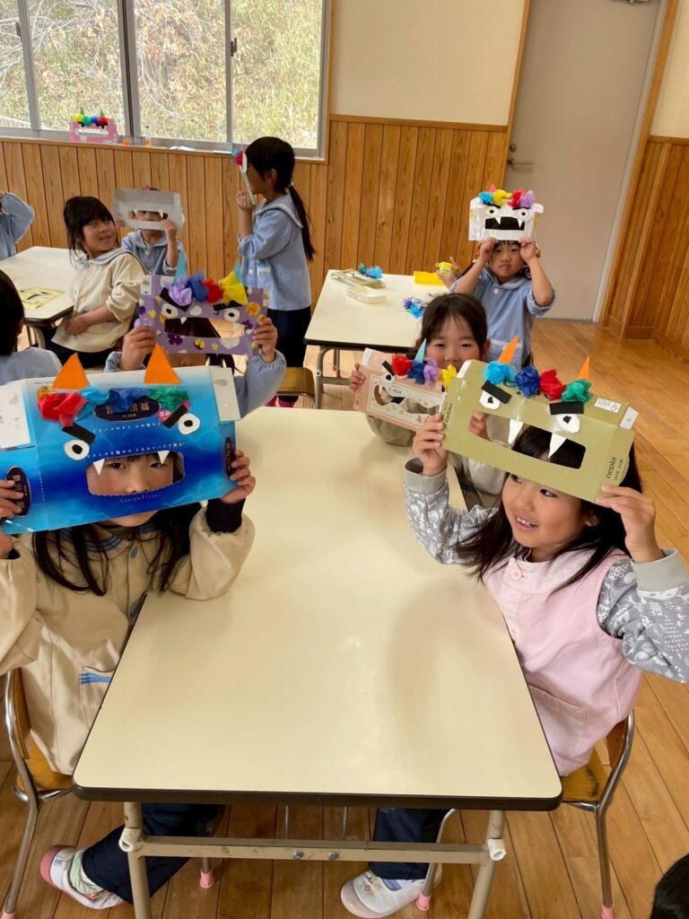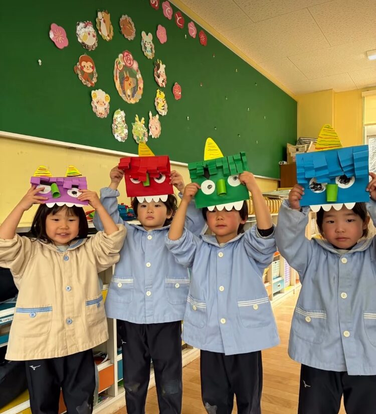 もうすぐ節分! 鬼のお面作りに真剣な園児さん達。