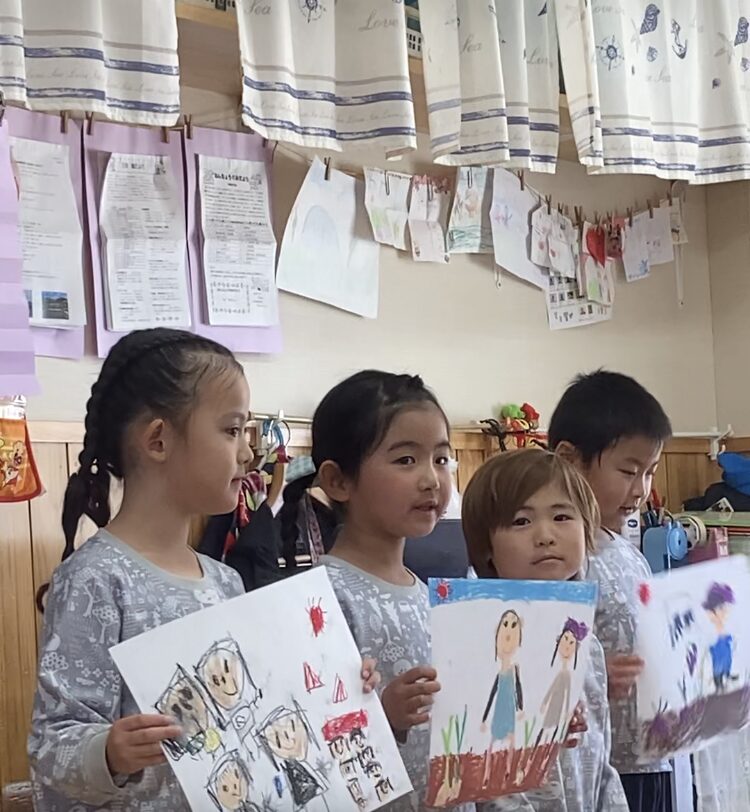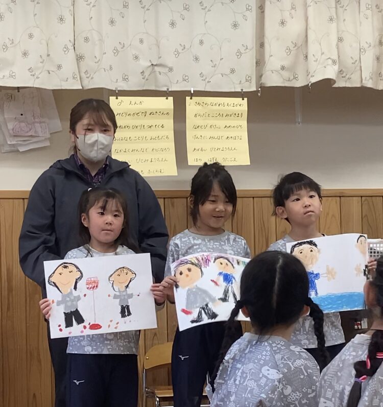幼稚園で楽しかったこと、思い出に残ったことを一人ずつ発表しましたよ。