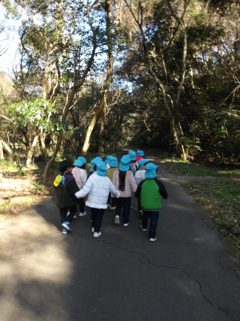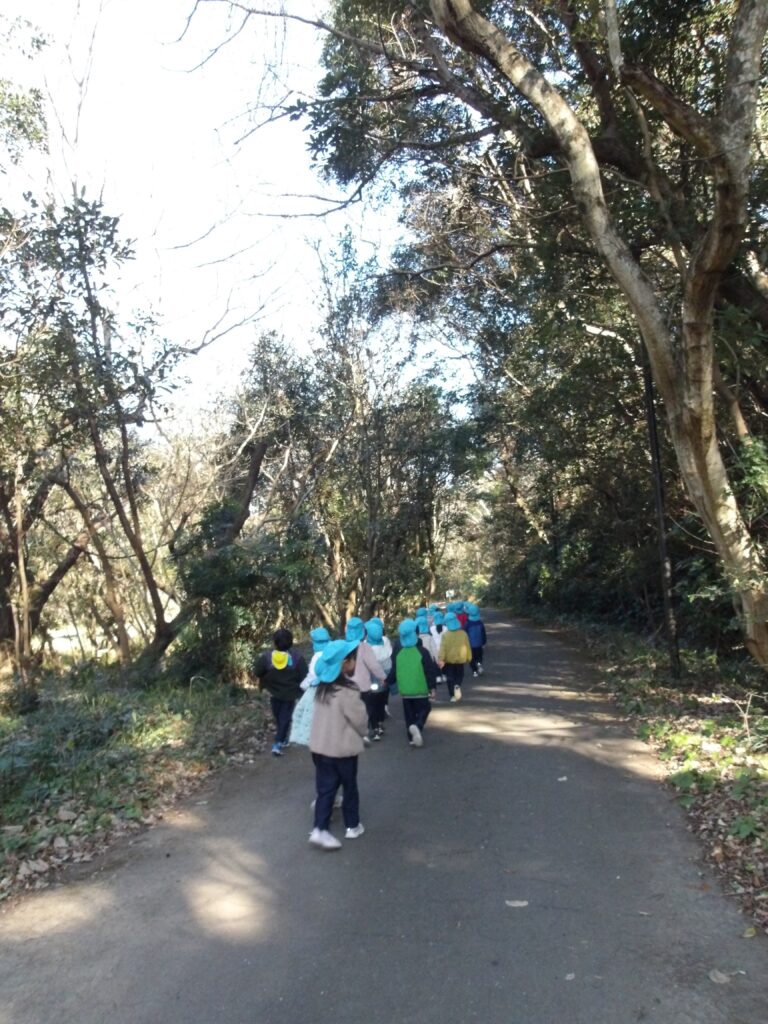 始業式翌日の9日、年長すみれ組さんが山田緑地へトレッキングへ。